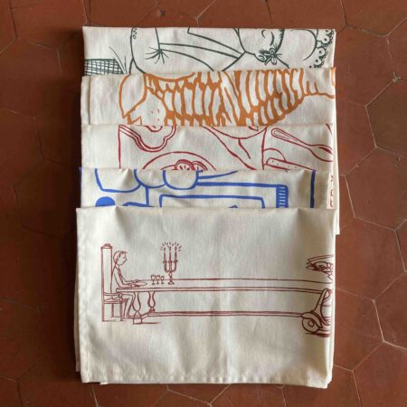 Quand c’est beau c’est bon !Comme autant de souvenirs hérités de la cuisine de Belette, chaque torchon est accompagné de sa recette pour donner goût aux motifs.