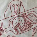 Quand c’est beau c’est bon ! Ce torchon est accompagné de la recette de La Charlotte aux fraises de Bobby d’après le dessin de Violette.