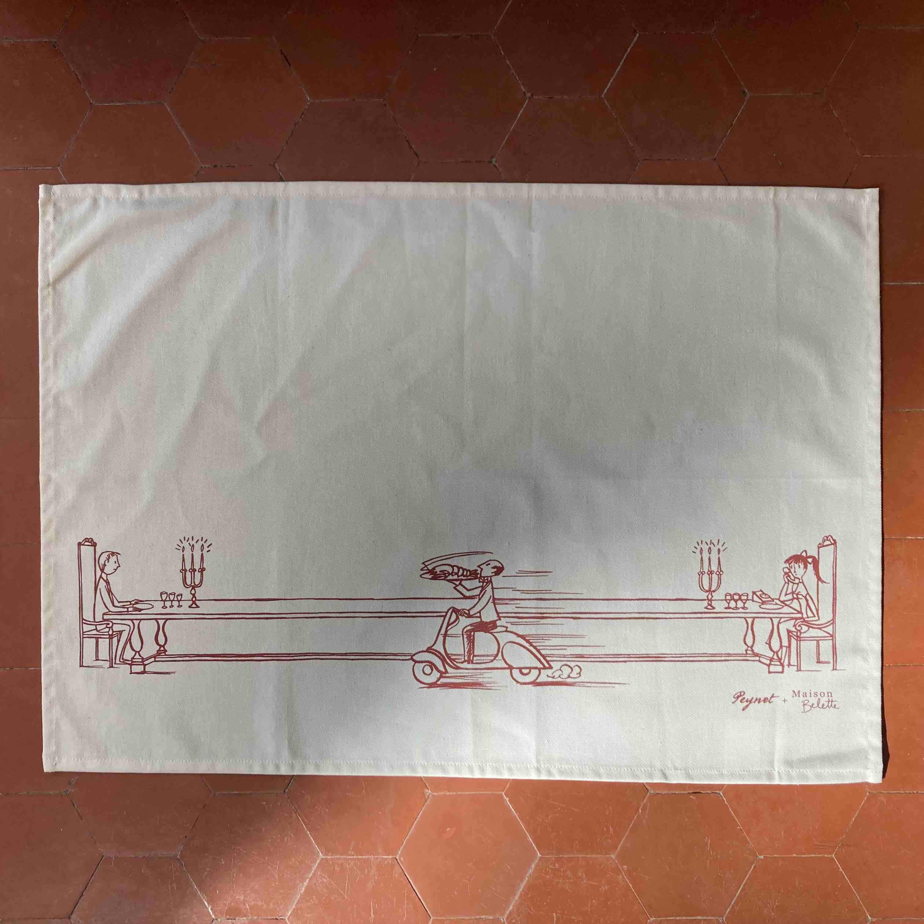 Quand c'est beau c'est bon ! Ce torchon est accompagné de la recette du Homard vapeur d'après le  dessin de Peynet.