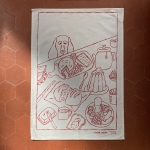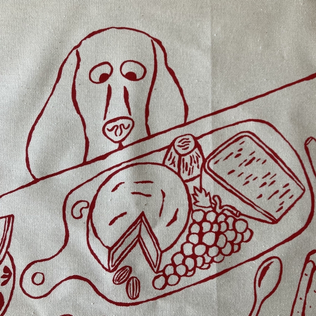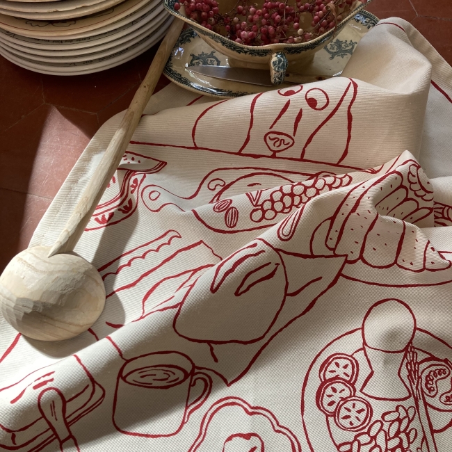 Quand c'est beau c'est bon ! Ce torchon est accompagné de la recette de La Charlotte aux fraises de Bobby d'après le dessin de Violette.